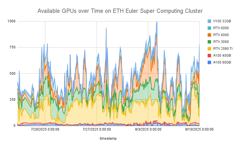 Figure 2: Available GPUs over time on ETH Euler Cluster