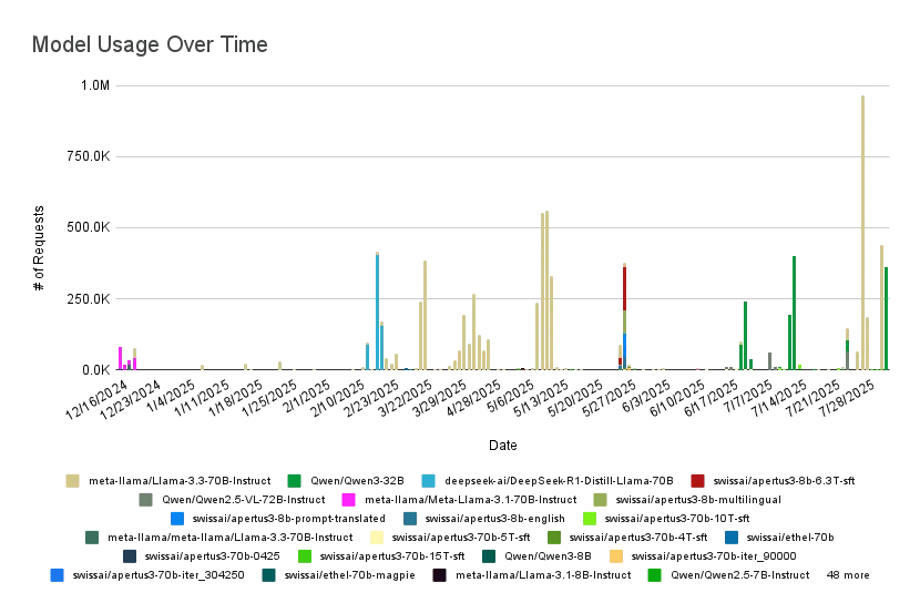 Figure 1: Daily Requests of various models on Swiss AI Serving Platform